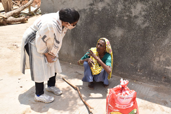 The years 2020 and 2021 have taken a toll on many people's lives. The arrival of COVID-19 along with the cyclone has impacted a lot of families, especially those belonging to the vulnerable communities. During these times, when survival has become extremely difficult for them, a few young businessmen along with Samvedana have come forward to support the people of the villages that were hit hard by the cyclone Tauktae. These people were the unemployed labourers working in the Narmada Project in the village Andhaari near Dholka. They distributed around 150 grocery kits to them.